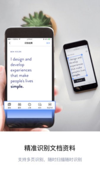 内置摄像功能,通过OCR文字识别技术自动识别你想要的信息。优化了低光照环境下的拍摄效果,确保在各类场景下都能获得清晰的扫描结果。