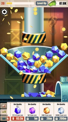 不断研磨不同的产品来赚取收入,可以用来提高液压机的性能,给你带来极大的趣味。通过升级液压机,你可以解锁更强大的压力等级,体验更震撼的粉碎效果。游戏还设置了多种成就系统,让玩家在解压的同时获得更多成就感。