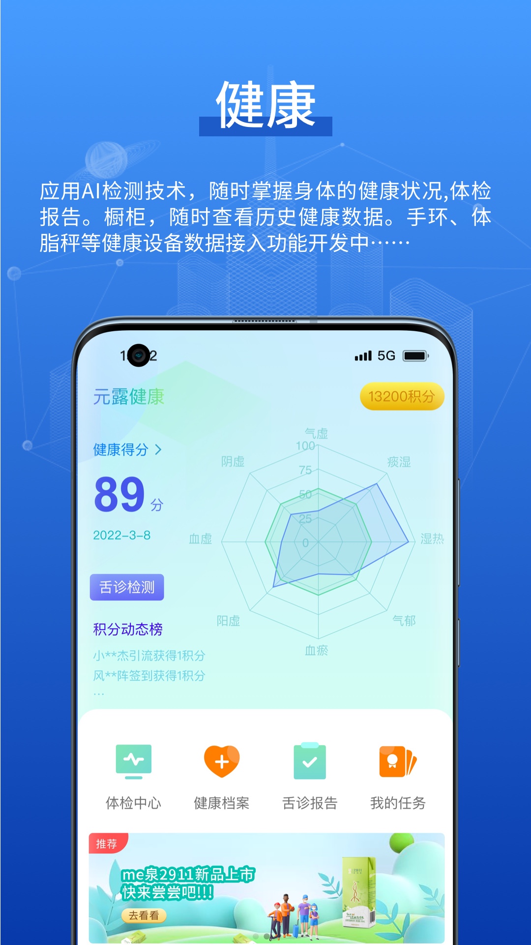 元露健康app官方版是一款集健康管理、智能检测和在线服务于一体的综合性健康软件。通过AI技术与智能设备的结合,为用户提供精准的健康数据分析和个性化建议,帮助培养科学的生活习惯。软件内置丰富的健康知识库和在线商城,让用户随时获取专业指导和便捷购物体验。无论是日常健康监测还是疾病预防,元露健康app都能为您提供全方位的健康守护,是追求品质生活的理想助手。