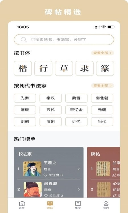 临古学书最引人注目的特色在于其庞大的碑帖资源库。软件收录了从甲骨文到现代书法名家作品的上万件高清碑帖,每一件都经过专业团队精心修复和数字化处理,确保用户能够欣赏到最清晰的书法细节。用户可以通过多种检索方式,如按书法家、字体风格、历史朝代或关键词进行精准查找,满足不同层次的学习需求。