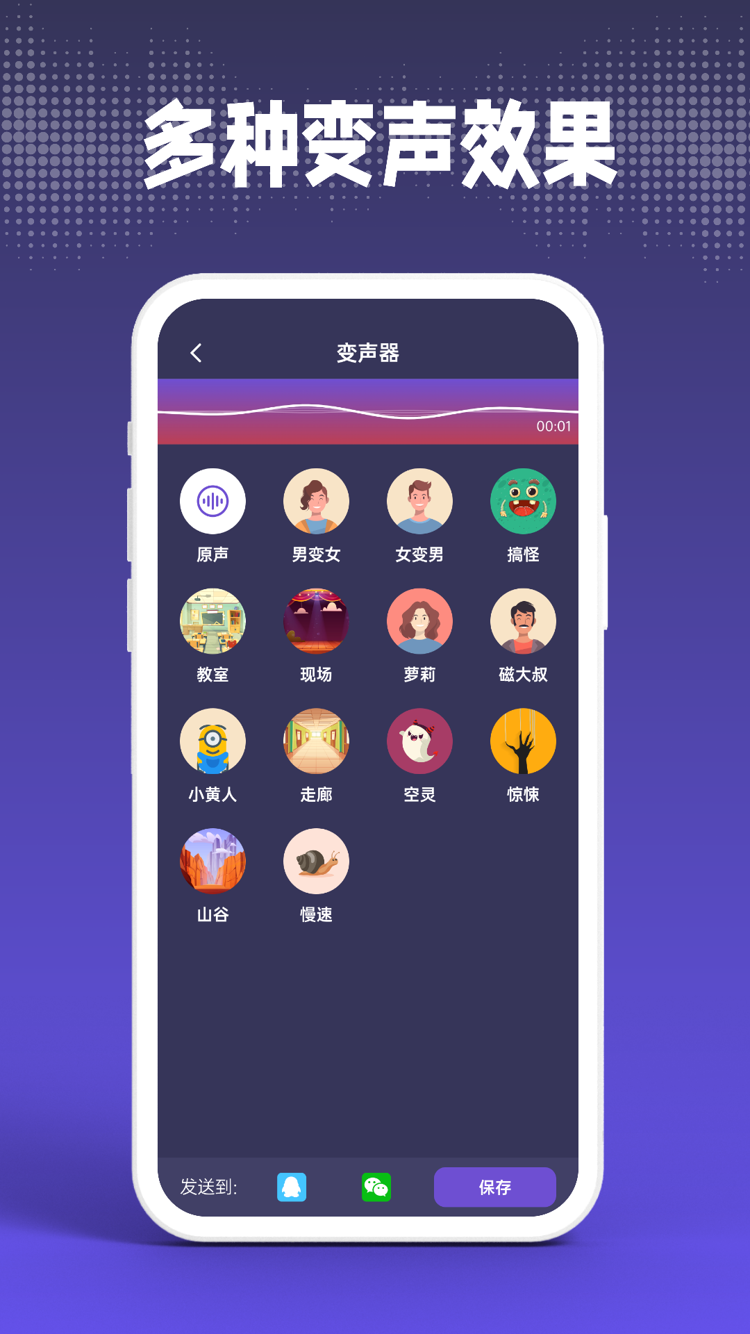 「录音」功能支持一键操作,无时长限制,满足各类录音需求。「语音包」专业丰富,包含大叔、萝莉、老人、正太等多种音效,应有尽有。「聊天变声」支持在线实时变声交流,带来无穷整蛊乐趣,同时保持神秘感,让社交更有趣。