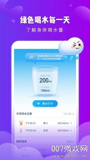 【知】提供准确喝水数据,展示7天喝水量,健康状况,根据天气情况智能推荐每日饮水量;