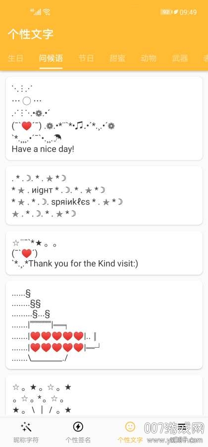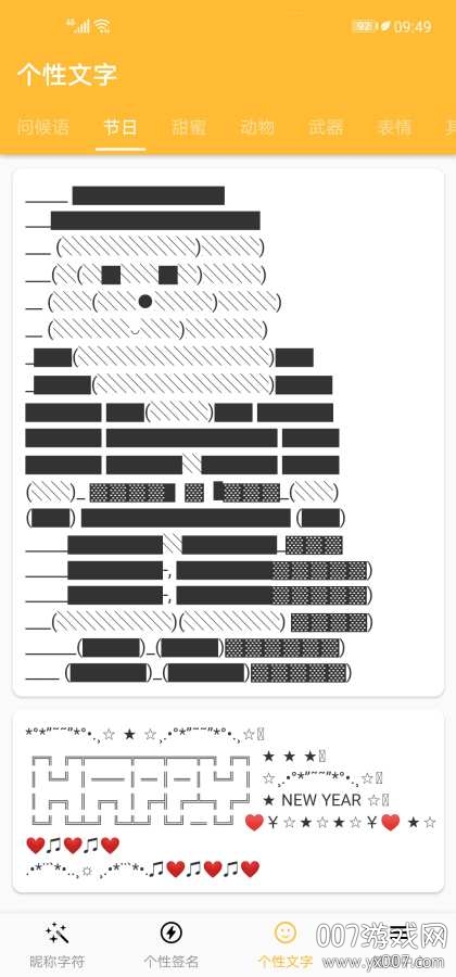 昵称字符大全2021最新版是一款专为个性化社交需求打造的创意字符工具,内含海量潮流符号组合与艺术字模板。无论是游戏ID、社交账号还是聊天昵称,用户都能通过智能生成器快速获取独特符号组合,支持实时预览与一键复制功能。软件持续更新2021年最新流行的颜文字、边框符号和动态效果字符,让每个用户都能轻松打造令人眼前一亮的个性标识,告别千篇一律的普通昵称。