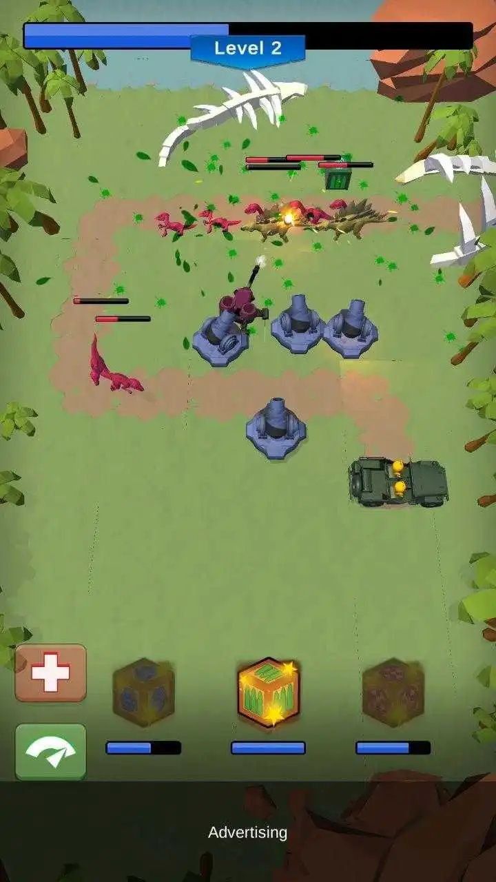 游戏完美融合了经典的塔防玩法元素,玩家需要精准地部署各类防御炮塔,构筑起坚固的防线来抵御恐龙的进攻。游戏采用了清新明快的画面风格,精心打造出一个栩栩如生的恐龙世界,让玩家仿佛置身于真实的侏罗纪公园之中。随着关卡的深入,玩家将遭遇越来越多不同种类的恐龙,从体型较小的迅猛龙到体型庞大的霸王龙,每种恐龙都拥有独特的攻击方式和行为模式,为游戏增添了更多变数和挑战。