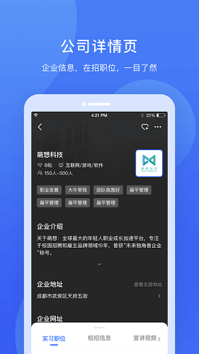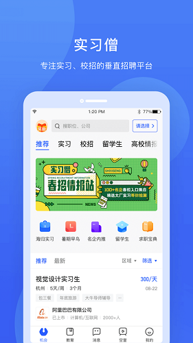 实习僧是由成都萌想科技有限责任公司打造的专注于大学生实习与校招的智能平台。平台汇聚全球知名企业资源,通过AI算法为不同学历背景、专业方向的学生精准推荐匹配岗位,涵盖金融、互联网、快消等热门行业。系统提供从职位搜索、简历投递到视频面试的全流程服务,所有岗位均经过三重人工审核确保真实性,并设有权益保障机制。平台特别推出暑期实习绿色通道,联合500强企业提供可转正机会,同时配备职业导师团队提供1v1求职辅导,帮助大学生迈好职场第一步。