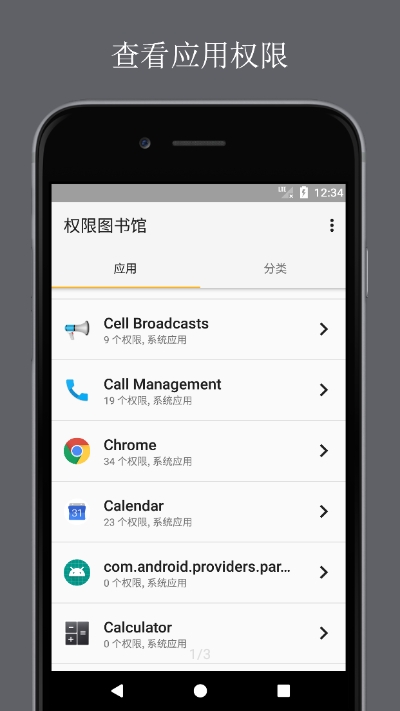 权限分类:提供了权限分类功能,用户可以按顺序或分类别查看应用的权限申请情况。这种分类方式让用户能够更直观地了解权限的分布情况,便于快速定位到关键权限。