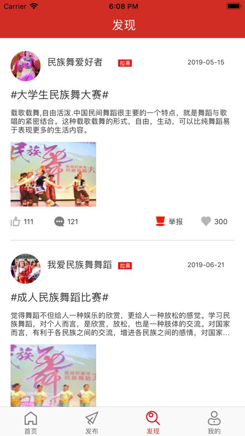 平台拥有完善的功能体系,包括首页、发现、发布和个人中心四大模块。首页会实时推送最新的民族舞比赛资讯和活动信息,用户可以随时了解并参与线下比赛。发现板块汇集了所有用户分享的舞蹈动态,支持互动交流功能,包括评论、点赞、收藏等操作,还能对不当内容进行举报。发布功能让用户可以自由分享自己的舞蹈视频、心得体会和训练日常。个人中心则提供了用户收藏管理、客服咨询、意见反馈等实用功能,全方位满足用户需求。