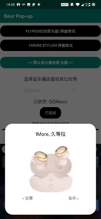 BearPop-Up是一款专为安卓用户设计的蓝牙耳机弹窗管理工具,它通过创新的动画交互方式,让蓝牙设备连接过程变得更加生动有趣。这款软件不仅能够智能识别主流蓝牙耳机型号,还能以丰富的自定义选项满足用户的个性化需求。从精美的弹窗动画到灵活的文字设置,BearPop-Up让每一次设备连接都成为独特的视觉体验。其轻量化的设计和稳定的后台运行表现,确保在不影响手机性能的前提下,为用户带来持续稳定的弹窗服务。