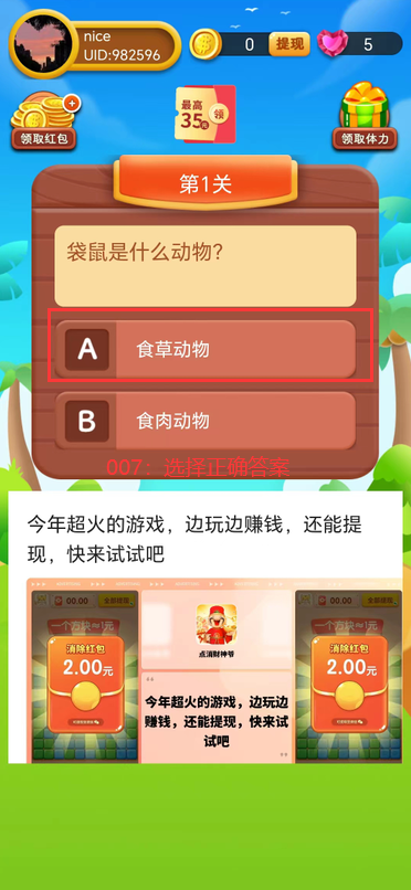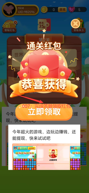 打开后开始答题,每次答题都可以获取红包奖励