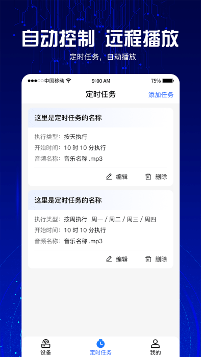 定时任务:智能化的日程编排功能支持按日/周/月循环设置,可精确到分钟级的播放计划。用户可提前编排好节假日特殊节目单,系统会智能跳过静音时段,实现全年无休的自动化广播管理。
