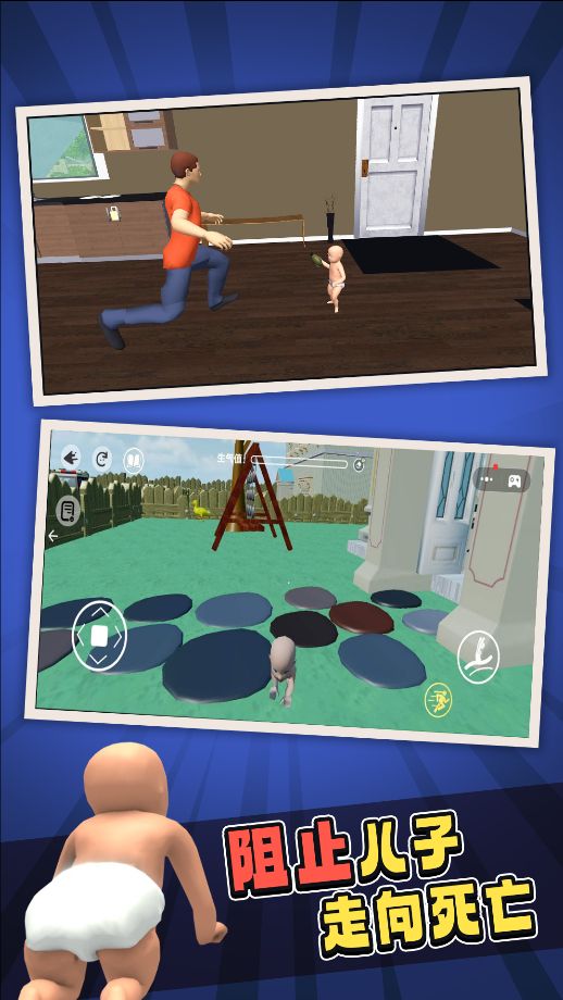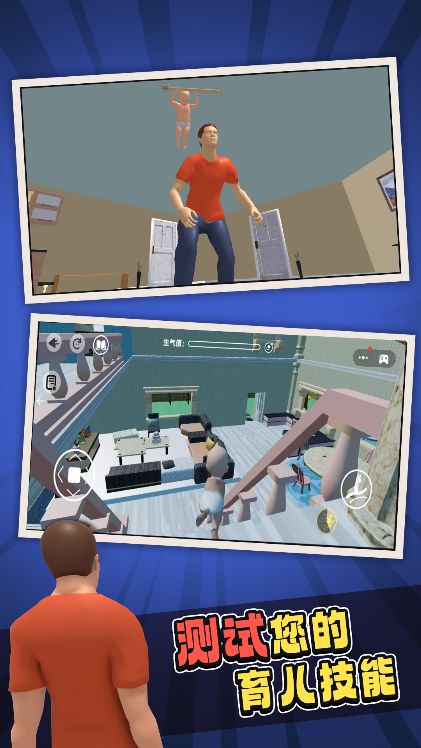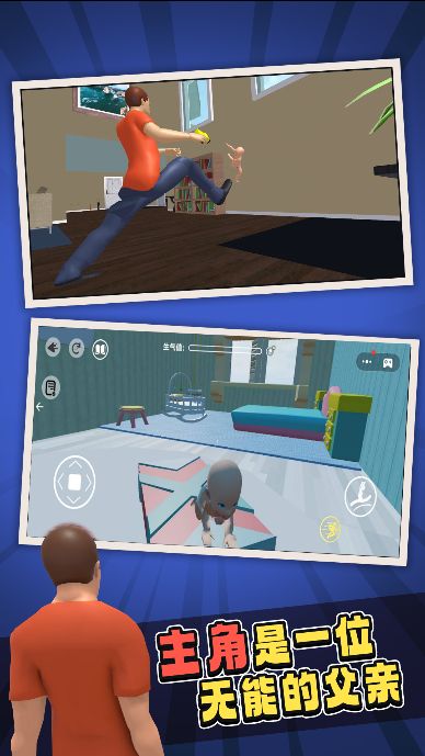 游戏节奏明快刺激,每局对抗控制在3-5分钟内,爸爸需要快速反应阻止儿子的危险行为,而儿子则要灵活走位躲避追捕,考验双方的反应能力和策略思维。丰富的道具系统为游戏增添了更多变数,爸爸可以用柜子锁住危险品,儿子则能拾取玩具制造混乱,双方都需要合理利用道具来实施自己的战术计划。游戏还加入了夸张搞笑的动画效果,当儿子做出危险行为时会触发滑稽的特写镜头,爸爸手忙脚乱的追防过程更是充满喜剧色彩,让整个游戏过程笑声不断。