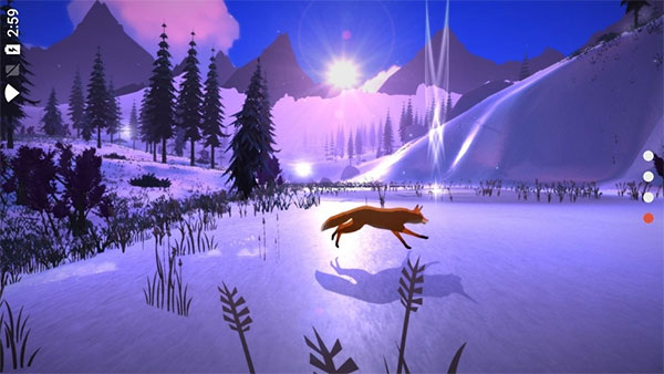 玩家将会扮演一只小狐狸踏上凄美的旅程,一路上可以发现与年轻夫妇相关的物品和故事,使得两条故事线相互缠绕,将会增强玩家的情感体验。游戏采用独特的碎片化叙事方式,每片泛黄的相册、每段断续的录音都像拼图般等待玩家收集。特别加入的昼夜交替系统,让白桦林在晨雾中若隐若现的景致与夜光蘑菇点缀的秘境形成鲜明对比。当玩家操控狐狸跃过结冰的湖面时,冰层下偶尔会闪过神秘的光影,这些精心设计的视听语言共同构建出令人沉浸的叙事氛围。