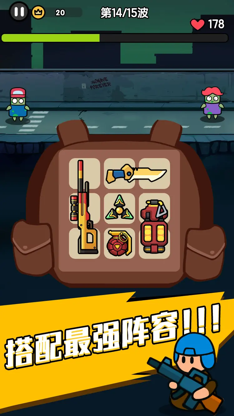 当末日降临,丧尸肆虐全球之际,你意外获得了一个神奇的背包系统。这个背包不仅能储存物资,还能将初级装备合成为强大的星级武器。在游戏中,你需要运用这些武器来对抗源源不断的丧尸群,同时收集珍贵的丧尸晶核来提升装备等级。随着游戏深入,你将解锁更多高级功能,包括基地建设、幸存者招募等,逐步扩大你的生存领地。游戏还加入了昼夜交替和天气系统,让生存挑战更加真实。