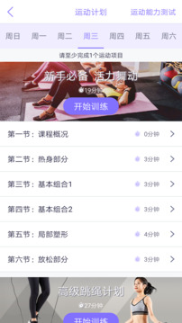 进阶运动计划,让减脂更科学 通过专业的运动能力评估测试,app会为用户制定循序渐进的运动计划。这些计划巧妙地将有氧运动与无氧训练相结合,室内锻炼与户外活动交替进行,确保减脂效果最大化。
