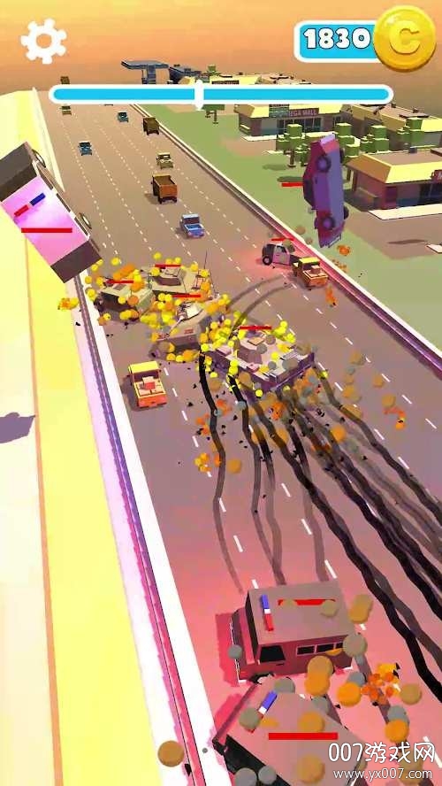 玩家需要利用障碍不断地闪避并且保证自身不会被警车追上摧毁他们的车辆。游戏中的障碍物设计非常巧妙,有些可以阻挡警车,有些则可能成为玩家的陷阱,需要玩家灵活应对。