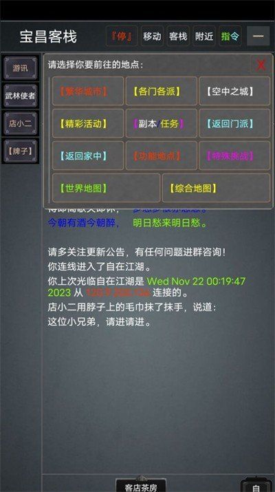 首先,你需要在007游戏网下载并安装万般虚妄,随后进入游戏创建角色。游戏提供了多种门派供你选择,每个门派都有独特的武功与剧情,你可以根据自己的喜好自由加入。在游戏中,你将体验到丰富的文字江湖玩法,通过完成任务、挑战副本等方式获取武功秘籍与稀有装备。此外,游戏还支持放置挂机功能,让你在离线时也能积累经验与资源,轻松提升实力。