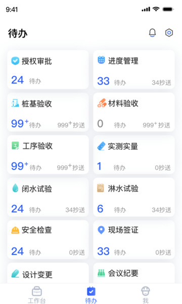 进度管理、桩基验收、材料验收、工序验收、实测实量、闭水试验、渊水试验安全检查,覆盖工程全生命周期管理;