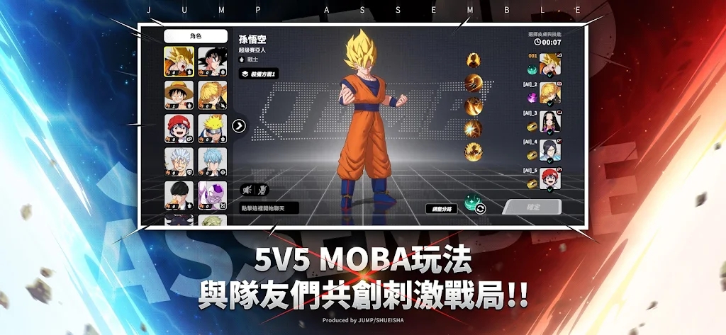 《JUMP:群星集结》是由集英社正版授权并全程监制的跨IPMOBA手游,汇聚了《周刊少年Jump》历史上最具影响力的漫画作品。游戏收录了包括《七龙珠》《海贼王》《火影忍者》《死神》《鬼灭之刃》《咒术回战》等二十余部经典IP的数百名角色,每个角色都经过精心设计,完美还原了原作中的形象与技能特效。玩家可以组建由不同作品角色组成的梦幻战队,在高度还原的经典场景中展开对决。游戏还特别设计了角色间的联动技能系统,让来自不同世界的英雄能够施展出令人惊艳的组合技,为玩家带来前所未有的跨次元战斗体验。