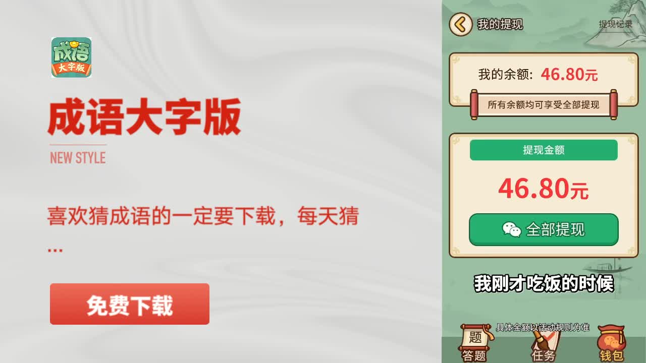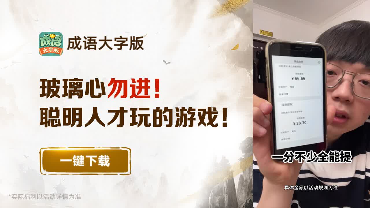 更多的专属红包,获取超高分数,解锁更多玩法和红包奖励。游戏平衡性良好,确保每位玩家都能获得公平的收益机会。成语小游戏,猜对1个成语≈0.45红包,满0.3红包就能提。提现门槛低,到账速度快,获得玩家一致好评。为玩家带来丰富的红包奖励,轻松上手展开挑战,实时提高自己的段位。游戏还设有防沉迷系统,确保健康游戏体验。
