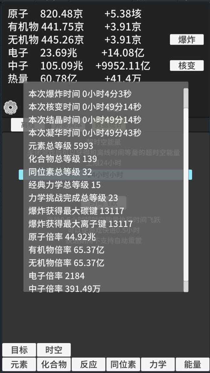游戏通过层层递进的探索机制,逐步揭示微观世界背后的宏大叙事,每个新发现都伴随着精彩的剧情演绎。数值系统设计精妙,从基础实验到高级核反应,数值跨度极大但过渡平滑,既照顾新手玩家又满足硬核玩家的挑战需求。完善的成长体系让每次升级都能带来明显的实力提升,特殊成就系统更是为追求完美的玩家提供了长期目标。游戏画面采用简约科技风格,粒子效果表现力出众,完美呈现了微观世界的绚丽景象。