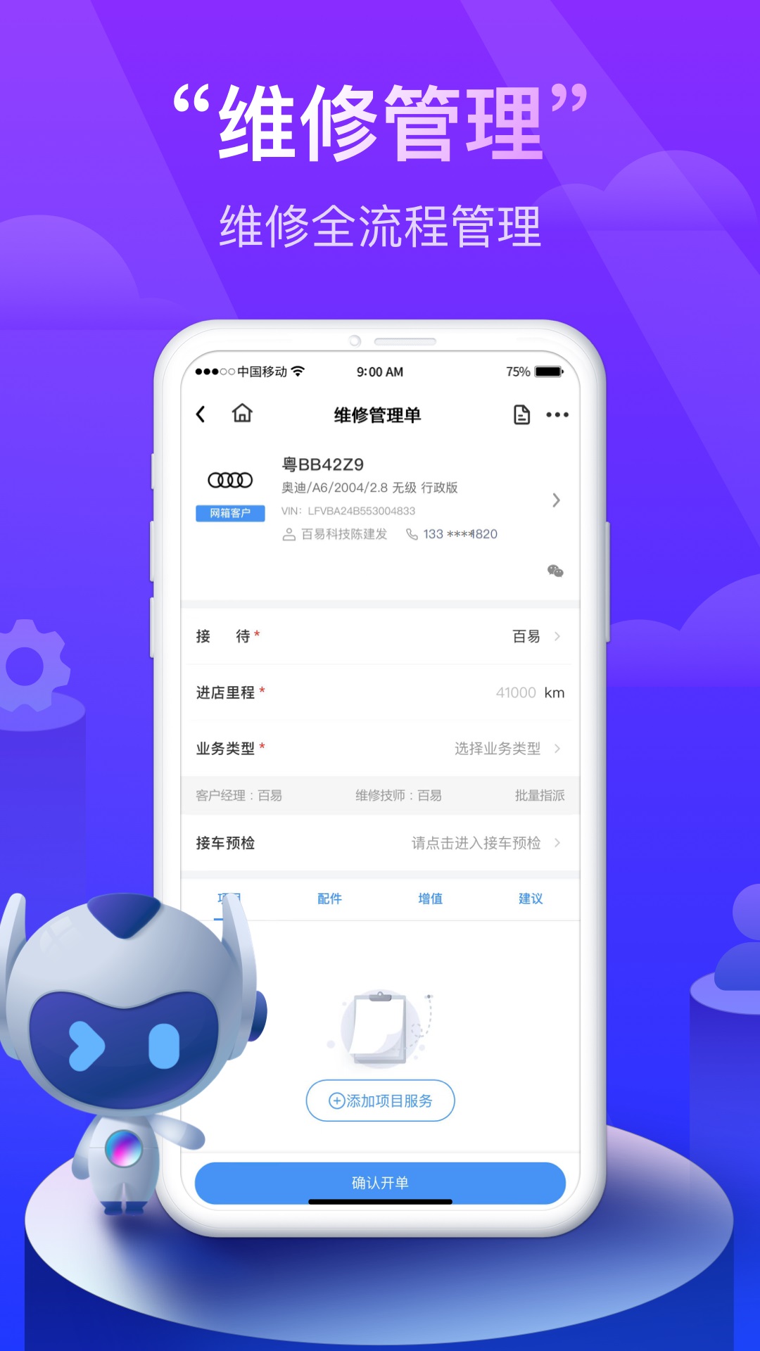 维修管理功能覆盖了从预约到售后评价的全流程服务,包括接待、检查、报价、派工、完工质检、交车、结算等环节。进销存管理系统支持入库、退货、库存浏览、盘点、移仓等多项操作,帮助门店高效管理库存。针对汽车维修门店的专业服务包括维修接待、健康检查、报价、派工、结算和回访等,全面提升门店运营效率。