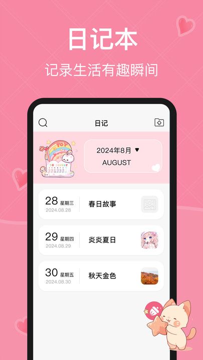 多功能日记本支持图文记录,用户可以随时记录经期感受、生活趣事或重要事件。所有记录都会自动分类整理,方便日后回顾。