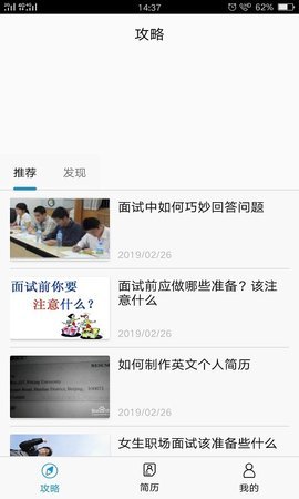 求职攻略:软件内置的求职攻略不仅包含常规的简历撰写技巧,还提供行业专家录制的视频课程,涵盖面试模拟、薪资谈判等实用内容。这些资源会定期更新,确保用户获取到最新的职场信息和求职策略。