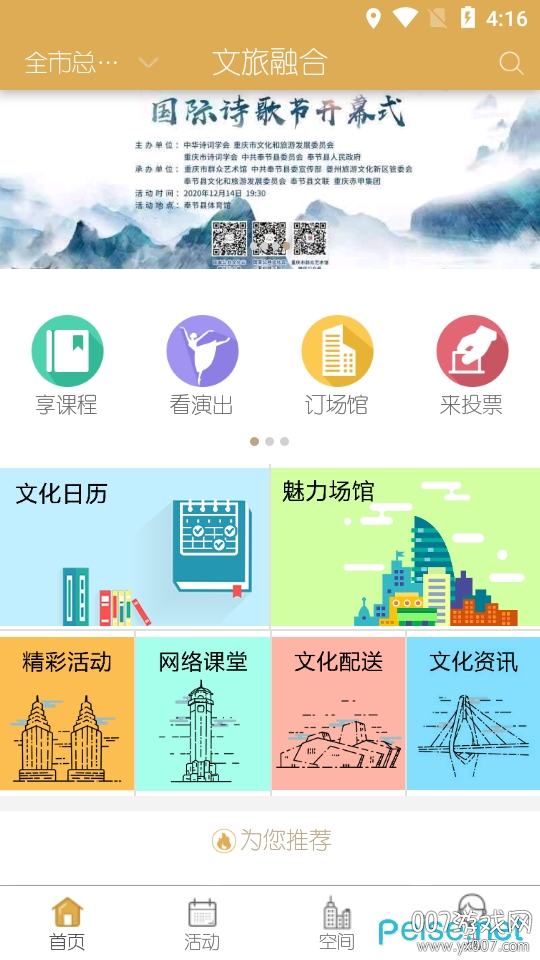 文旅融合多功能线上演出版是由重庆市官方推出的文化旅游融合数字平台,致力于为游客和本地居民提供一站式的文化体验与旅游服务。作为重庆智慧文旅建设的重要组成部分,该平台整合了全市优质文化资源,通过数字化手段打造集文化展示、演出观赏、旅游攻略、活动预约等多功能于一体的综合性服务平台。