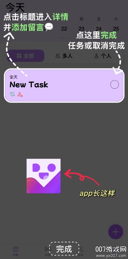 DuoDo是由宁波群鸟科技有限公司精心打造的任务管理与习惯养成软件,集个人规划与社交监督于一体。软件采用智能提醒系统,支持多种任务设置方式,包括单次任务、重复任务和长期目标。用户可自由设定任务日期、时间、重复周期和提醒方式,确保不会错过任何重要事项。独特的监工小队功能让好友可以实时查看任务进度,提供外部监督。任务详情页支持添加图文留言,完整记录完成过程。智能的未完成任务自动延后功能,配合清晰的月历视图,帮助用户合理规划时间。个人成就系统会统计连续打卡天数、完成任务数等数据,以可视化方式展示进步轨迹,持续激励用户成长。