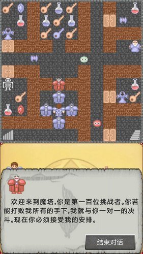 ★魔塔50层是经典的像素RPG打怪游戏,战斗采用回合制数值对抗。