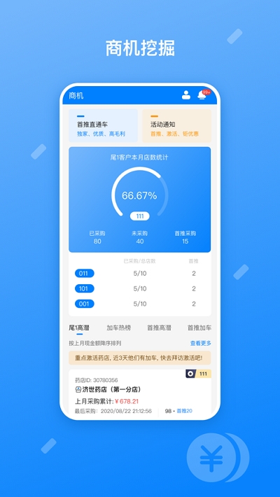 药伙伴具备多项专业特色功能:业务跟踪系统可实时监控销售进展,帮助用户把握每一个商机;商机挖掘功能通过大数据分析,精准定位潜在客户;资源管理系统让用户轻松管理各类销售资源。作为移动终端轻量级办公解决方案,药伙伴确保信息处理更加及时高效。其强大的数据报表分析功能,能够生成多维度的销售数据报告,为用户制定更精准的销售策略提供有力支持。