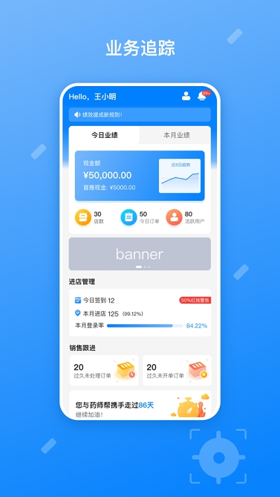 药伙伴是由广州速道易信息科技有限公司专为医药行业销售人员精心打造的一款移动办公软件。作为医药销售领域的专业助手,该软件集业绩统计、订单查询、店铺管理、资讯接收、销售分析、营销计划制定等多项实用功能于一体,全面满足医药销售人员的日常工作需求。通过数字化管理和智能化的业绩跟踪系统,用户可以实时掌握业务动态,优化工作流程,显著提升工作效率。