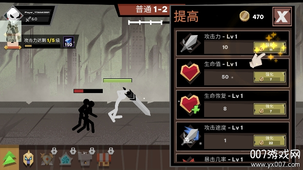 火柴人大战怪物的玩法简单易上手但富有深度。游戏开始后,系统会自动加载战斗场景,玩家可以立即投入战斗。在战斗中,火柴人角色会自动攻击附近的怪物,但玩家需要通过合理的策略指挥来提升战斗效率。游戏提供了丰富的成长系统,玩家可以通过升级角色属性、强化装备、学习新技能等方式不断提升战斗力。此外,游戏还设有完善的商店系统,玩家可以购买各种强力道具和装备。通过点击物品栏,玩家可以快速查看装备详情并进行更换。