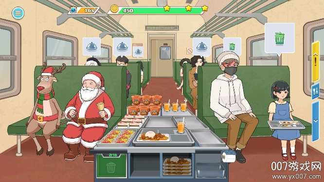 火车大厨圣诞专列是游戏推出的特别节日版本,为玩家带来全新的节日体验。首先打开游戏进入圣诞专列场景,你会看到装饰着圣诞元素的餐车和车厢,充满节日氛围。在餐车中,你需要将所有食材按照要求进行加工制作,完成后放入推车。接着点击右侧的黄色按钮进入乘客车厢,根据每位乘客的具体需求提供相应的餐品。特别要注意观察乘客头上的进度条变化,这是衡量他们等待耐心的关键指标。成功完成订单不仅能获得金币奖励,还能收集圣诞特别道具。整个游戏过程充满节日气氛,让玩家在欢乐的圣诞氛围中享受烹饪的乐趣。