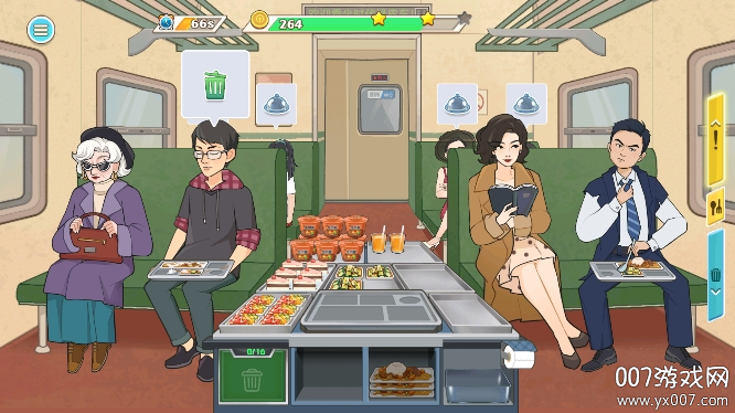 火车大厨是一款以火车餐车为背景的趣味烹饪模拟手游,玩家将在游戏中扮演一名专业的火车厨师,为不同需求的乘客提供美味可口的餐点。游戏的核心玩法是观察乘客头上的进度条变化,在进度条进入红色区域前及时完成餐品制作并送达,成功满足顾客需求即可获得丰厚金币奖励。游戏画面精致,操作简单易上手,同时充满挑战性,让玩家在轻松愉快的氛围中体验烹饪的乐趣。无论是喜欢模拟经营类游戏的玩家,还是对烹饪感兴趣的休闲玩家,都能在这款游戏中找到属于自己的乐趣,快来加入火车大厨的世界吧!