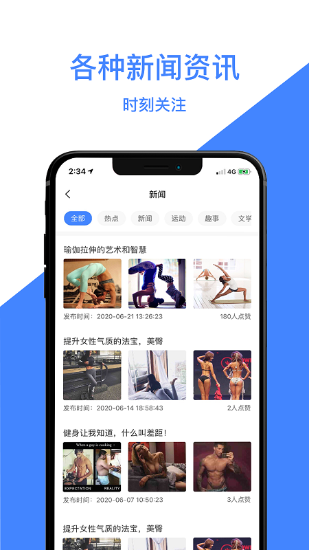 每天都会推送各种运动新闻资讯,您空闲的时候都能在线轻松阅读,了解国内外最新健身动态和赛事信息;