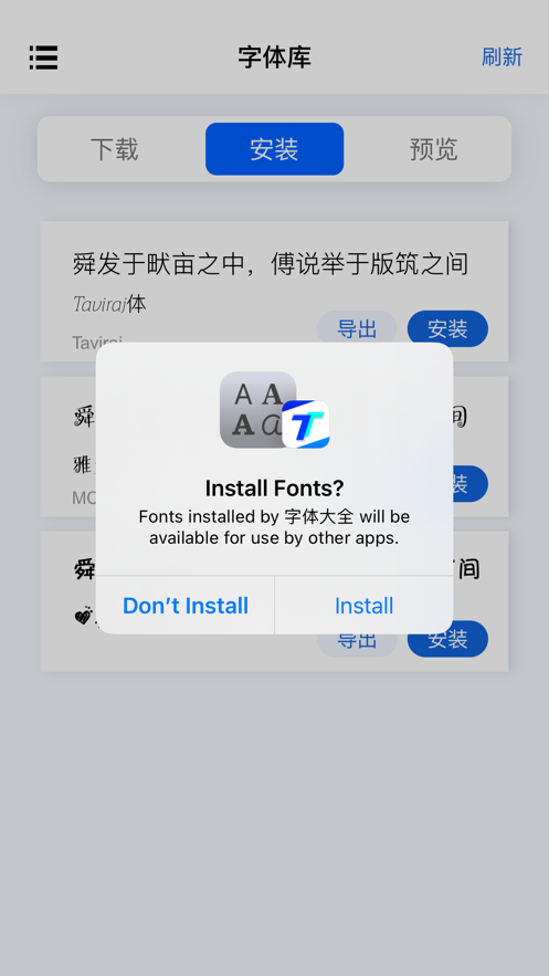 想让你的iPhone或iPad焕然一新?《字体大全》app为你带来全新的个性化体验!这款专为iOS用户设计的应用,拥有63款精美字体任你挑选,无论是优雅的手写体、时尚的现代风,还是复古的经典款,都能一键预览并快速切换。更棒的是,它还完美适配深色模式,让你的设备在任何光线下都能展现最佳视觉效果。告别单调的系统字体,用《字体大全》为你的设备注入独特个性,让每一次屏幕点亮都成为视觉享受!