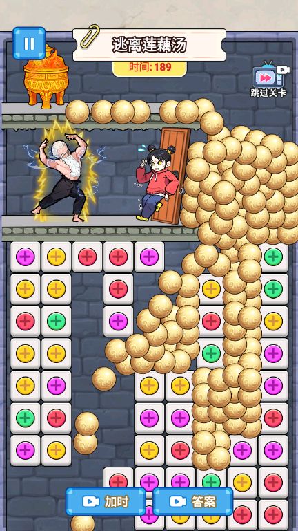 游戏玩法丰富多变,每个关卡的目标都不一样,需要玩家采取不同的方式,在短时间内做出决策。玩家需要仔细的观察方块布局,找到最佳消除点,制造最大的混乱,这种玩法既考验眼力又考验策略。通过收集金丹,解锁更强大的技能,可以增加逃生的成功率,这种成长系统让玩家在游戏过程中不断获得成就感。游戏还设置了多种道具和特殊方块,为玩家提供更多战术选择。