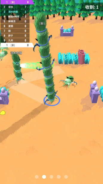 游戏提供多种创新玩法和模式,从经典竞技到限时挑战,满足不同玩家的需求。精心设计的关卡场景搭配鲜艳明快的色彩搭配,营造出轻松愉悦的游戏氛围。独特的成长系统让玩家在收割过程中不断解锁新技能,每场对决都能带来新鲜体验。无论是单人闯关还是多人对战,都能感受到游戏带来的无限乐趣。