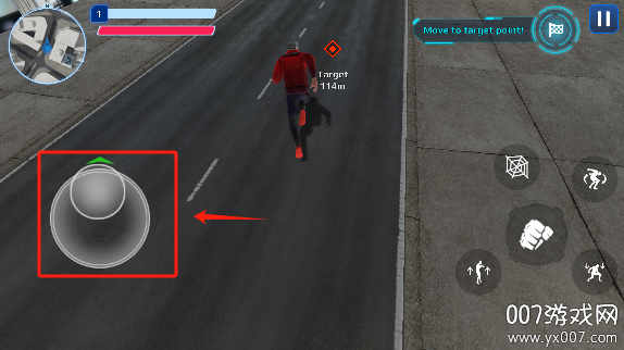 进入游戏后,点击屏幕上的"Taptostart"按钮即可开始你的冒险之旅。通过左下角的虚拟摇杆可以控制角色的移动方向,让你在城市中自由穿梭。游戏会提供详细的新手引导,帮助你快速掌握基本操作。跟随指引完成任务目标,逐步解锁更多精彩内容。随着游戏的深入,你将面临更多挑战,需要灵活运用各种技能和道具来应对不同的敌人和障碍。游戏操作简单易上手,但想要成为真正的英雄还需要不断磨练自己的战斗技巧。