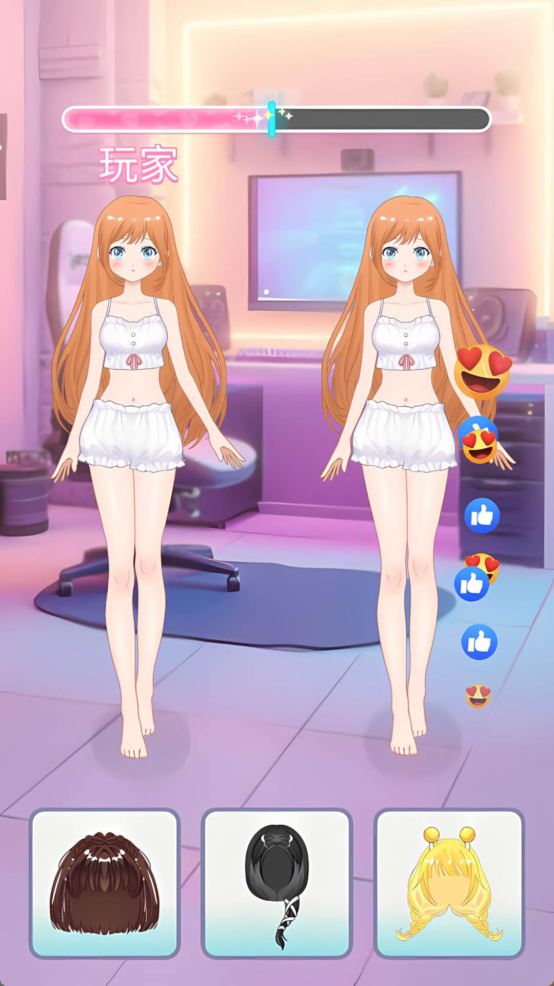 全方位造型定制系统让您尽情发挥创意,从发色、发型到眼影、唇彩,从服装款式到配饰搭配,每个细节都支持深度定制,确保您能打造出独一无二的偶像形象。游戏精心设计了多样化的互动场景,包括华丽的舞台表演、专业的摄影棚拍摄、温馨的日常互动等,让您沉浸式体验偶像生活的方方面面。随着游戏进程的推进,您将不断解锁更多精美的服装与场景,持续获得新鲜的游戏体验和探索乐趣。