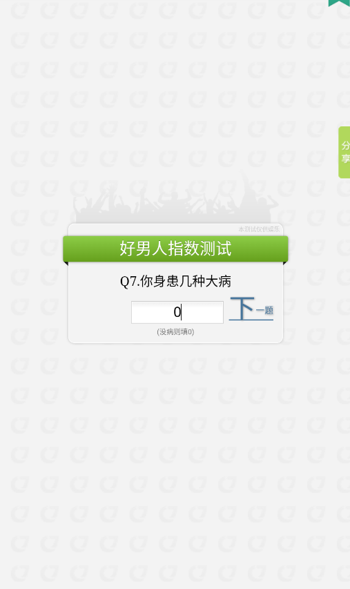 《好男人指数测试》是一款充满趣味性的心理测试类手机游戏,通过生动直观的交互界面和精心设计的测试题目,帮助用户评估男性品质。游戏采用问卷形式,结合心理学原理,为用户提供个性化的测试结果分析。无论是想了解自己的性格特质,还是希望评估身边男性的品质,这款游戏都能带来轻松愉快的体验。操作简单易懂,测试过程充满惊喜,结果页面设计精美,支持一键分享功能,让您和好友共同探讨测试结果。