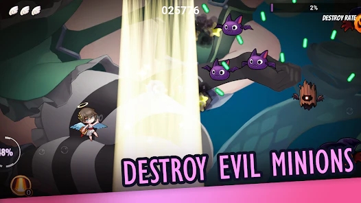 玩家在游戏中扮演一位小天使,通过发射特殊的液体炮弹来攻击敌人。游戏操作简单易上手,但想要精通需要掌握精准的时机判断和走位技巧。游戏中有两种特殊道具:一种是能够增强攻击强度的强化道具,每获得一个可以增加一束弹幕,最多可叠加至三束;另一种是清屏道具,可以在危急时刻清除屏幕上的所有弹幕。