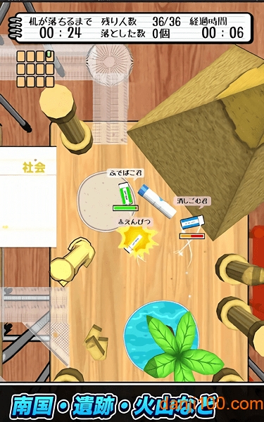 把除自己以外的所有的橡皮都撞下桌子!注意利用桌面的边缘和障碍物,制定巧妙的进攻策略。
