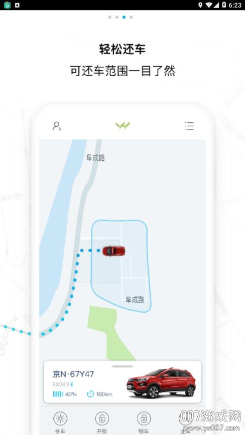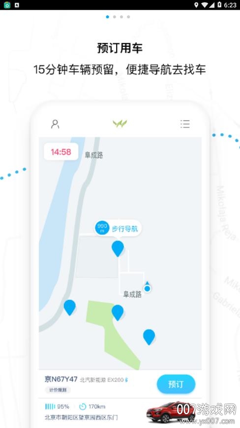 预订用车功能,支持15分钟车辆预留,精准导航指引找车路线
