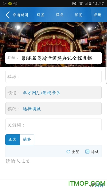 普通新闻:支持文字、图片、音频等多种形式的新闻稿件撰写和发布