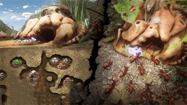 精美画面:游戏采用高品质的画面表现,最大程度还原了森林和地下世界的生态环境,精致的画面细节让玩家能够身临其境地体验蚂蚁军团的生活。