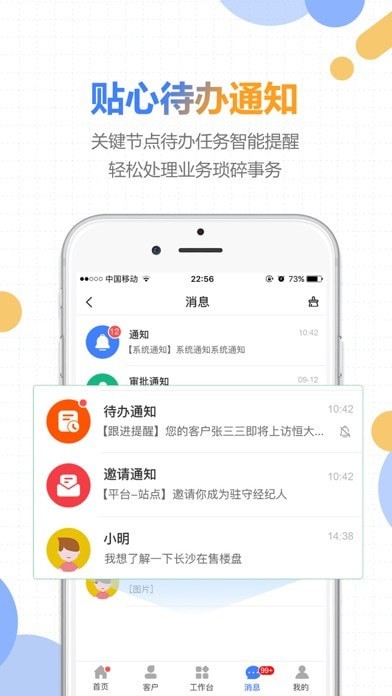 好房云平台上的各种贴心待办事项,系统及时通知,让你能即时轻松处理各种业务琐事,及时通讯,客户任何问题,随时随地在线沟通,快速获客成交。平台的数据分析功能尤为出色,帮助经纪人精准把握市场动向,做出更明智的决策。