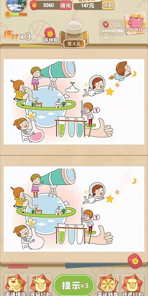 首次登录找茬发发发游戏时,系统会赠送一个登录红包,新玩家千万不要错过这个福利。游戏采用关卡制设计,每通过一个关卡都能获得相应的红包奖励。此外,游戏中还会随机出现漂浮红包,玩家可以随时点击领取。游戏画面精美,操作流畅,让玩家在轻松愉快的氛围中享受找茬的乐趣。