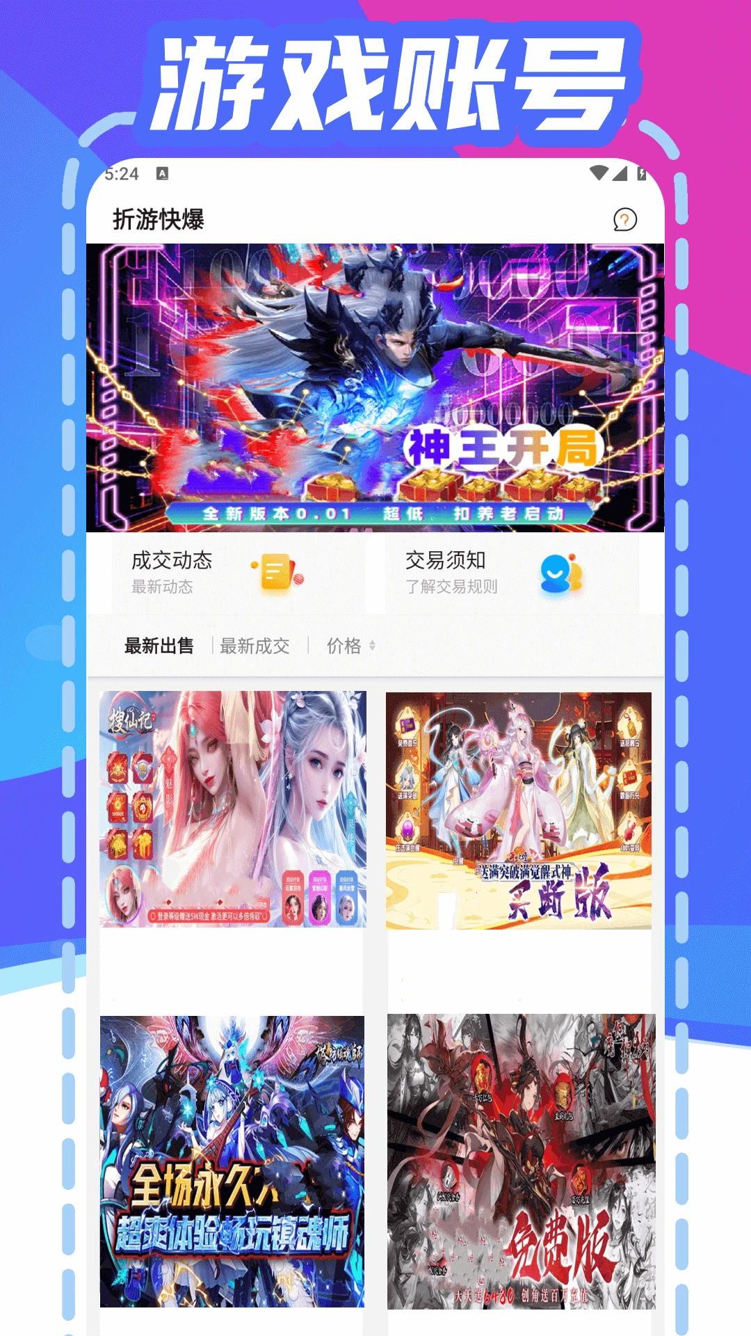【账号丰富】海量手游账号,仙侠游戏,传奇游戏,策略游戏,三国游戏,魔幻游戏,回合游戏,挂机游戏,卡牌游戏等千余款官方授权游戏账号